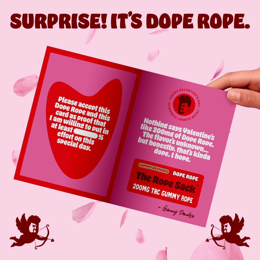 Created by Dope Rope × Highmark Greeting Cards, this is a greeting card cleverly hiding a 200MG Limited-Edition Premium Gummy Rope.